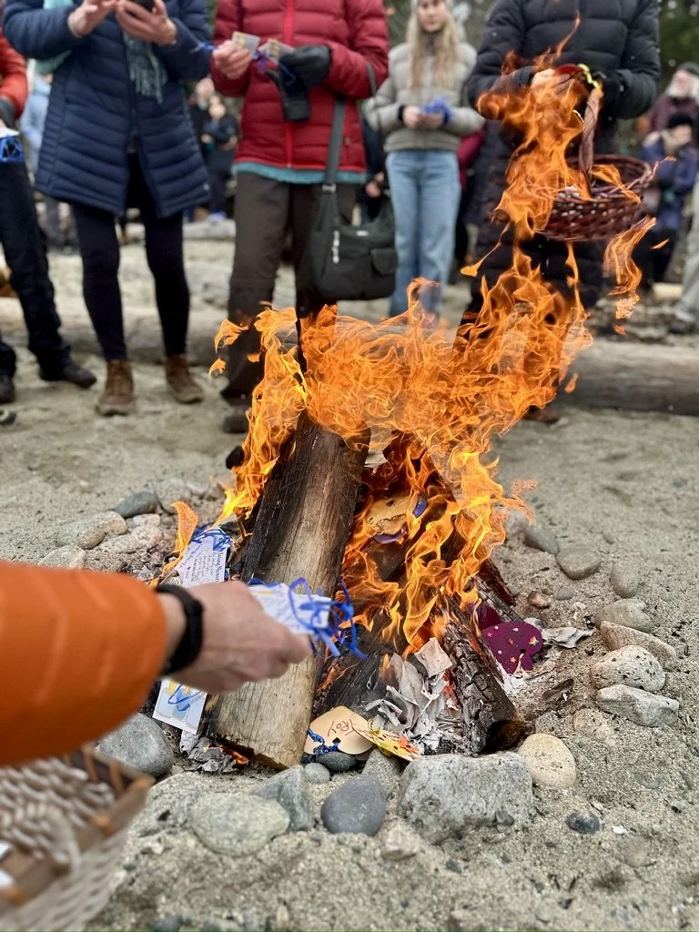 Since 1993, Sunshine Coast Hospice has hosted a ceremonial bonfire on New Year’s Day called “Lighting of the Memories.” Held at Mission Point, Davis Bay, the event invites the public to symbolically bring the cherished memory of their loved one(s) into the new year. Lighting of the Memories is a follow-up to our Lights of Life event in December, where hundreds of ornaments are collected with handwritten tributes or the names of friends and family who have passed away. The ornaments with messages are collected and brought to Davis Bay to be lit in the ceremonial bonfire, symbolizing the release of the sentiments expressed.