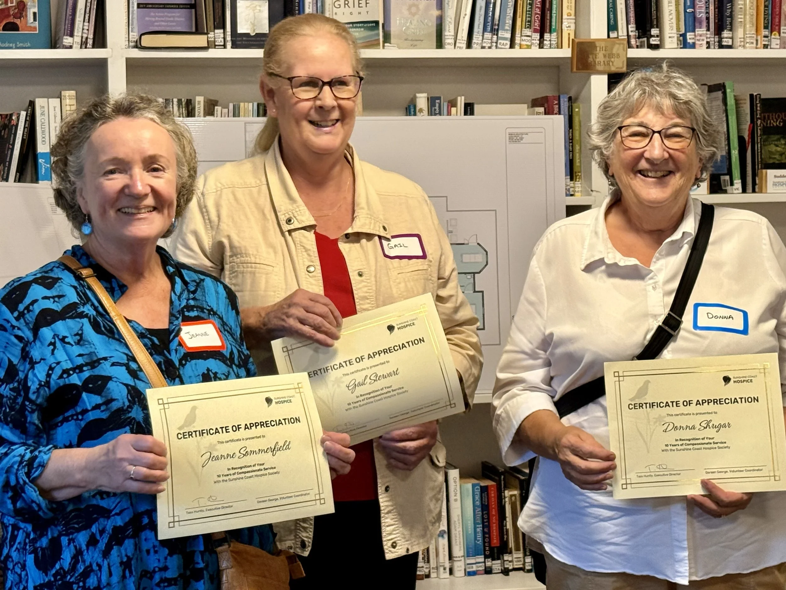 We also had the pleasure of honouring several long-time volunteers whose years of dedicated service have helped shape and sustain Hospice on the Sunshine Coast.